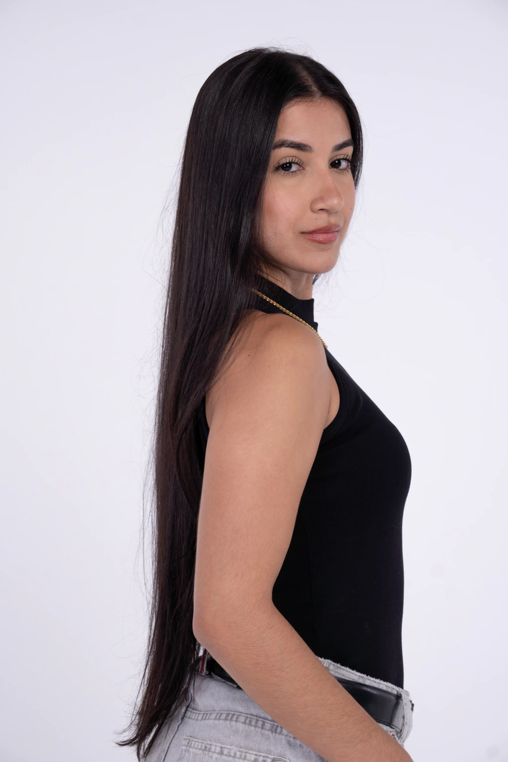 A Regata Canelada Gola Alta Feminina em Viscose Preta é a escolha ideal para quem busca unir conforto e sofisticação em um visual moderno. Confeccionada com 98% viscose e 2% elastano, oferece toque macio e caimento ajustado, valorizando a silhueta. Seu design de gola alta proporciona um ar elegante e versátil, perfeito tanto para combinações casuais quanto para produções mais refinadas.